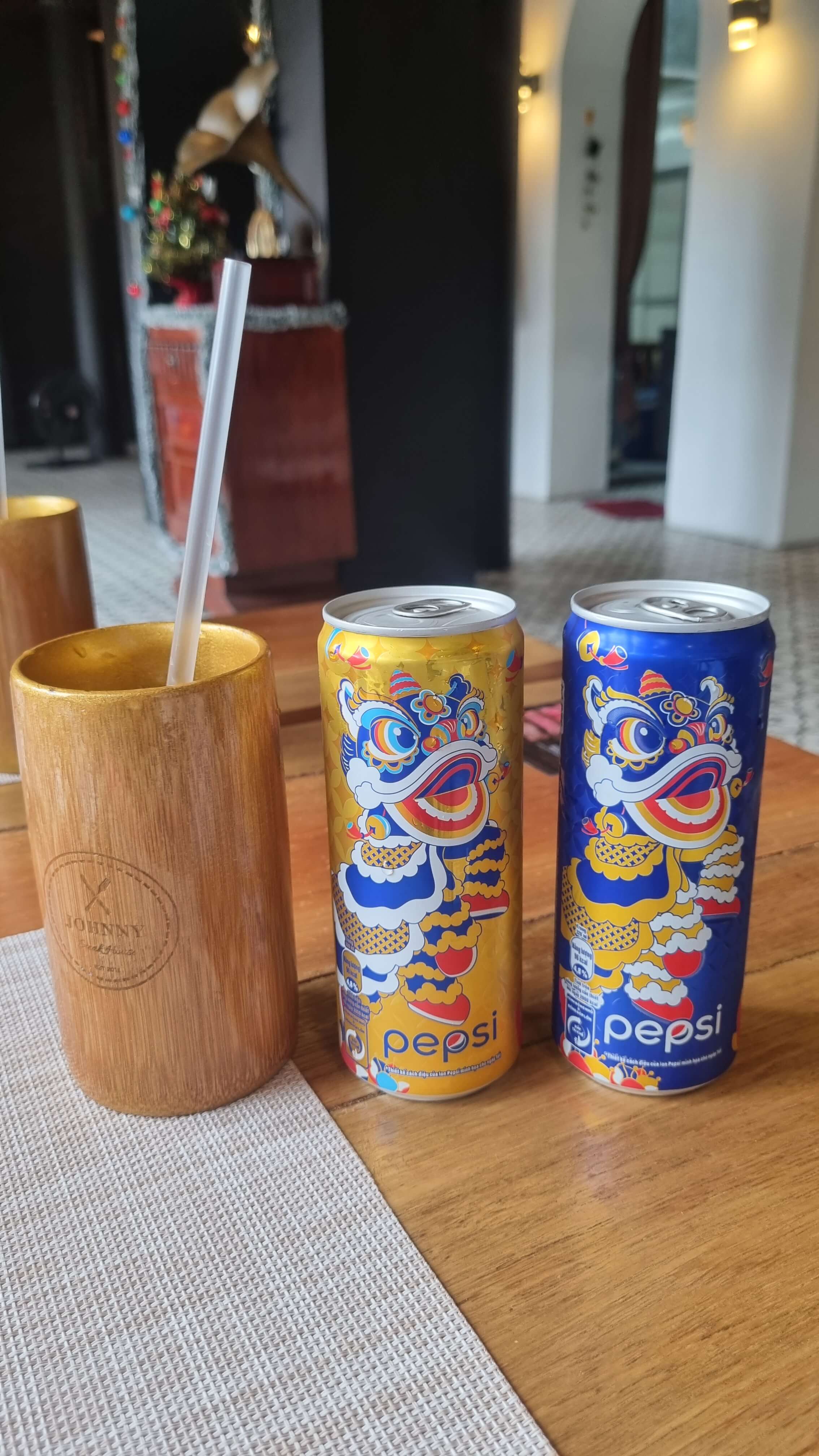 음료로 콜라를 시켰는데 너무 예쁜 용 디자인의 콜라가 나와서 한국에 돌아가기 전 하나 더 사서 가지고 왔습니다. 청룡의 해라서 용이 그려진 것 같습니다.