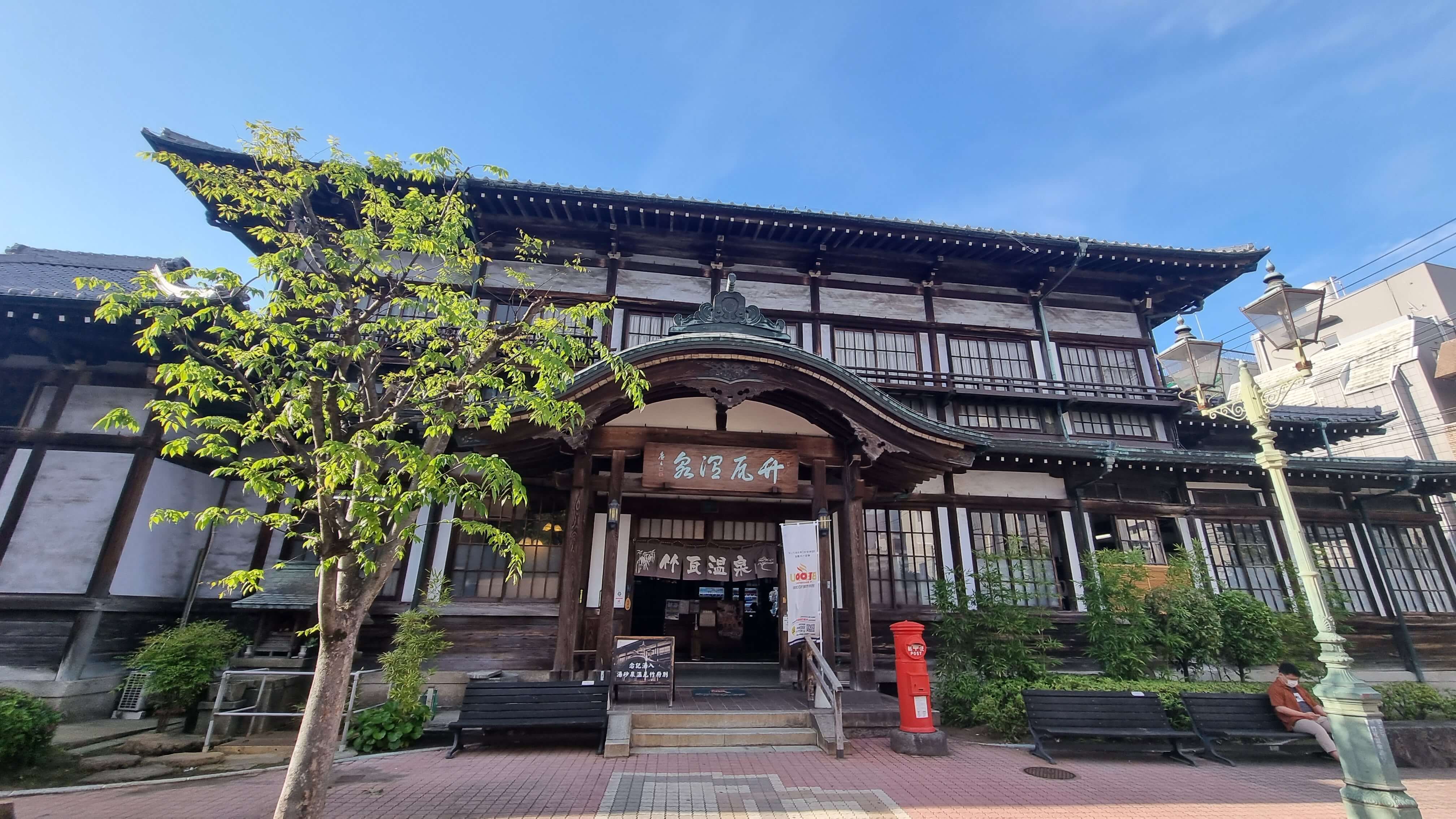 맥스밸류 마트 주차장에서 걸어서 3분 정도 걸리며 1800년대에 오픈한 온천입니다. 건축물 문화재로도 등재되어 있으며 지금도 영업을 하고 있는 곳입니다. 실제로 보면 조금 서늘한 느낌이 드는데 오래된 건축물에서 나오는 아우라가 느껴집니다.