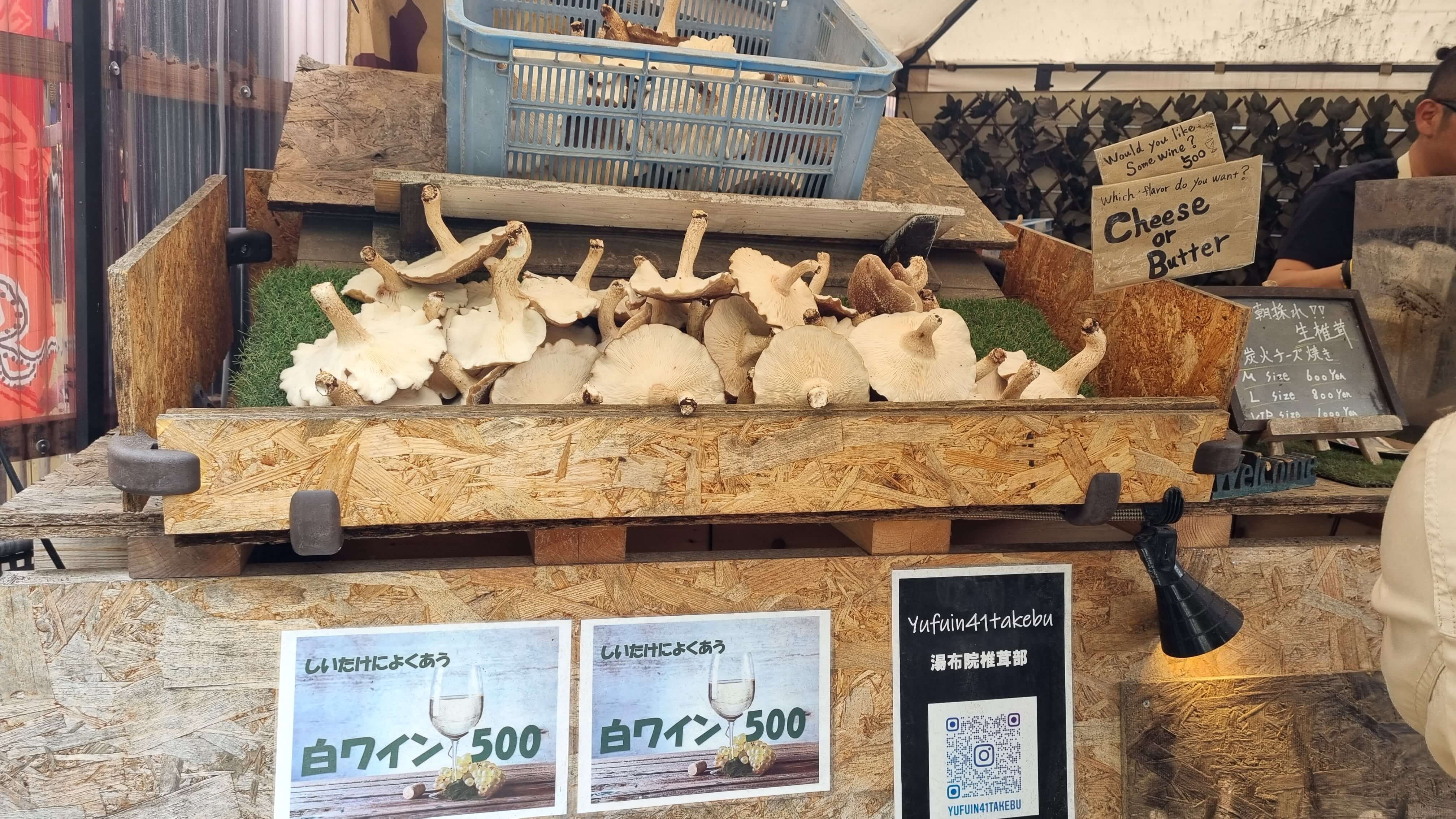 저는 유후인 온천욕을 하러 왔기 때문에 표고버섯 구이와 대왕 타코야키, 금상고로케, 벌꿀 아이스크림으로 점심을 해결했습니다.