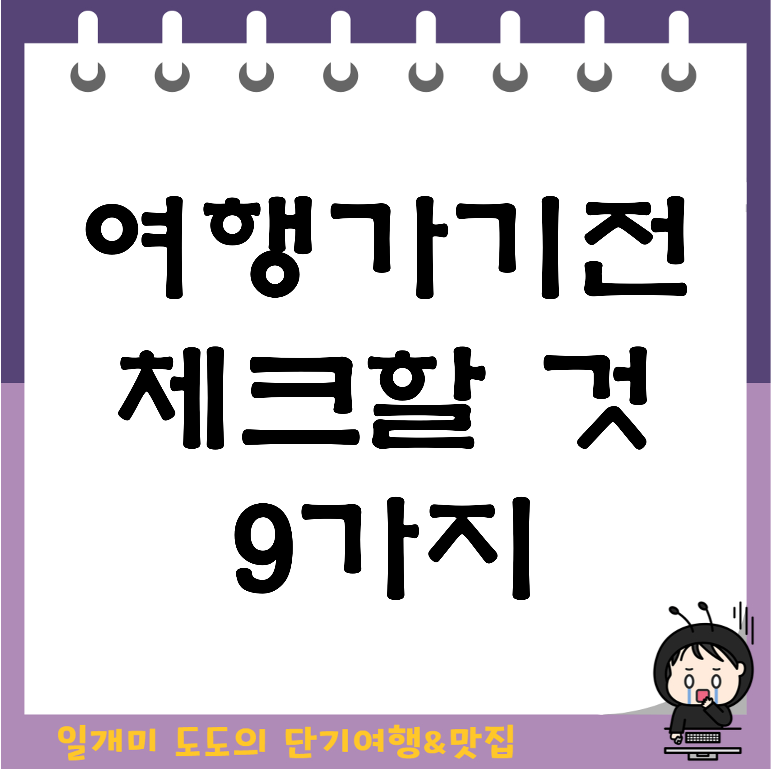 여행가기 전 놓치는 것 없이 꼼꼼히 잘 챙기셔서 안전하고 행복한 여행 되시길 바랍니다.