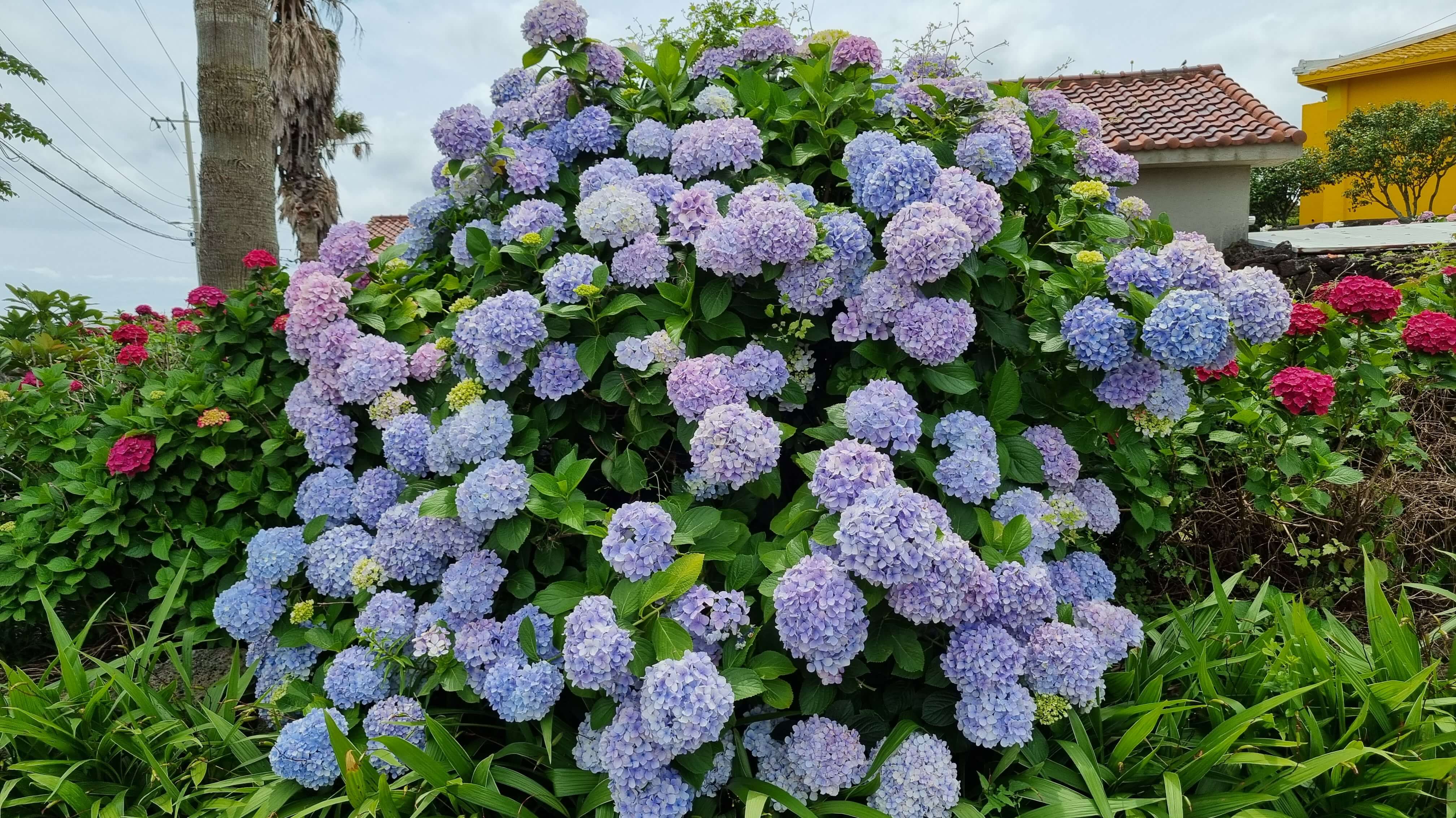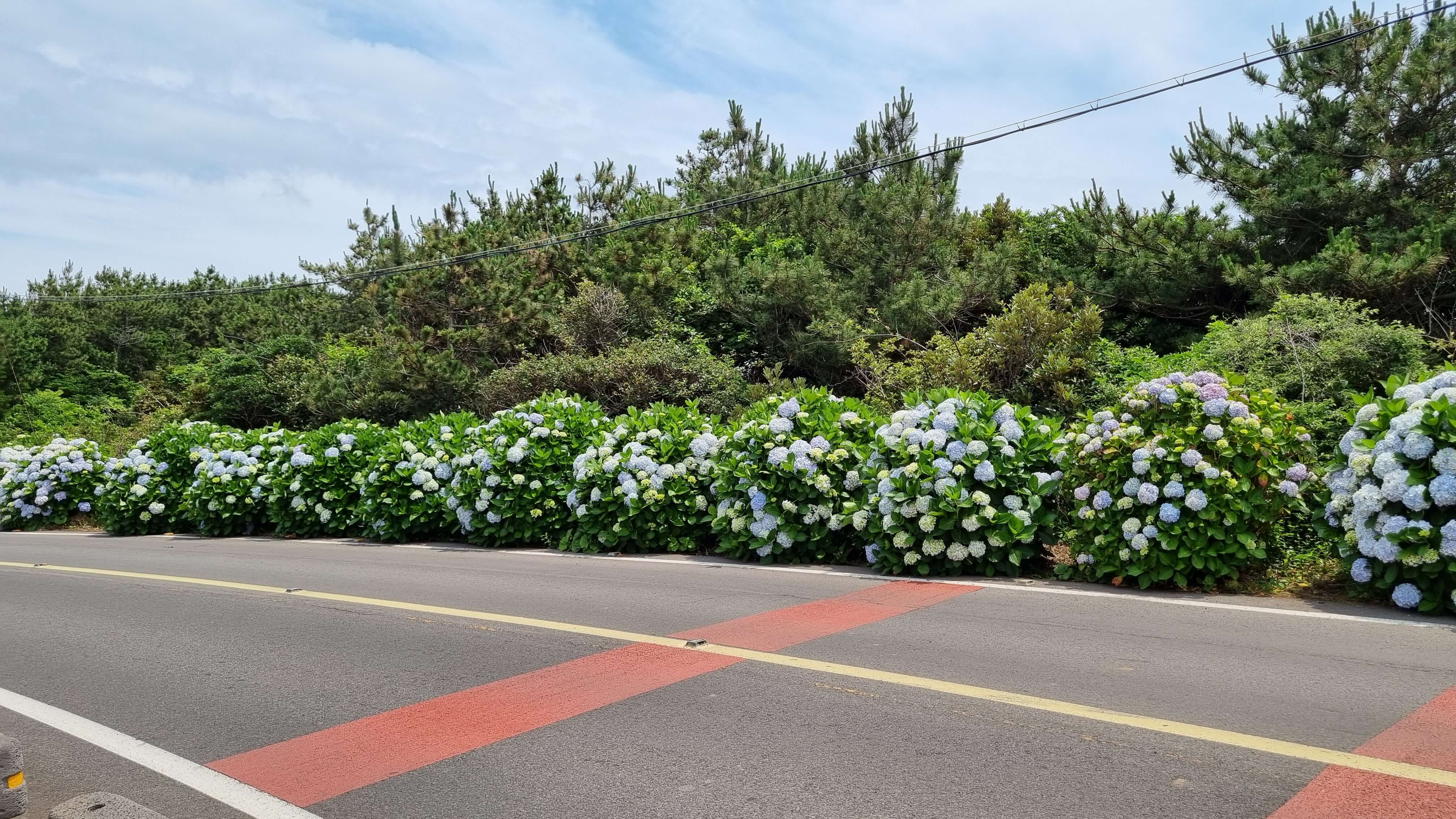 종달리에는 위치마다 다른 색의 수국이 도로를 따라 피어있어 그 모습 또한 장관을 이루고 있습니다.
