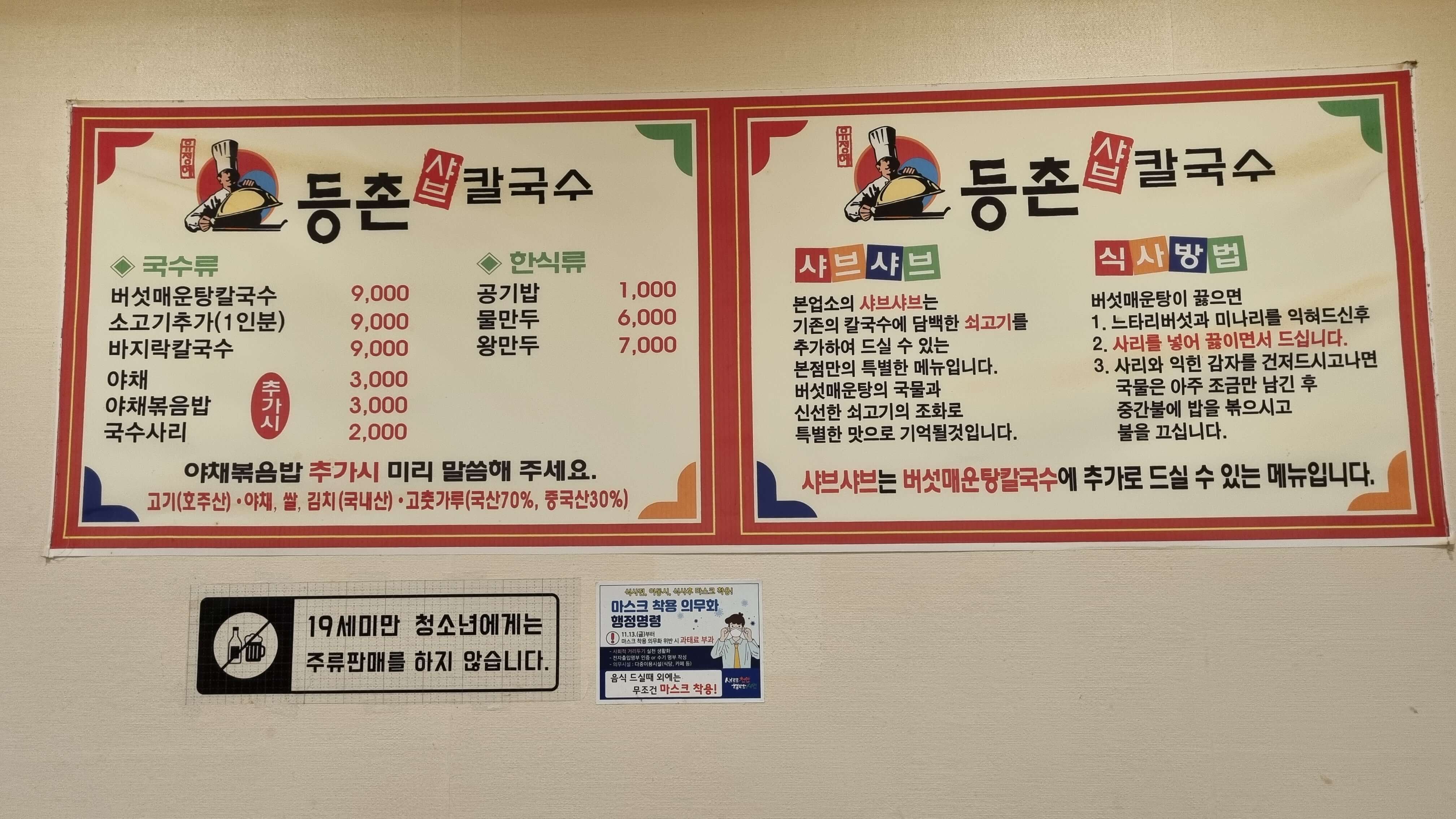 메뉴는 간단하게 버섯 매운탕칼국수와 바지락칼국수 2가지에 물만두와 왕만두 정도만 있었습니다. 소고기를 추가하면 버섯 매운탕 칼국수에 샤브샤브로 넣어먹을 수 있습니다. 저는 버섯매운탕 칼국수 2인분에 소고기추가 1인분을 하였습니다.