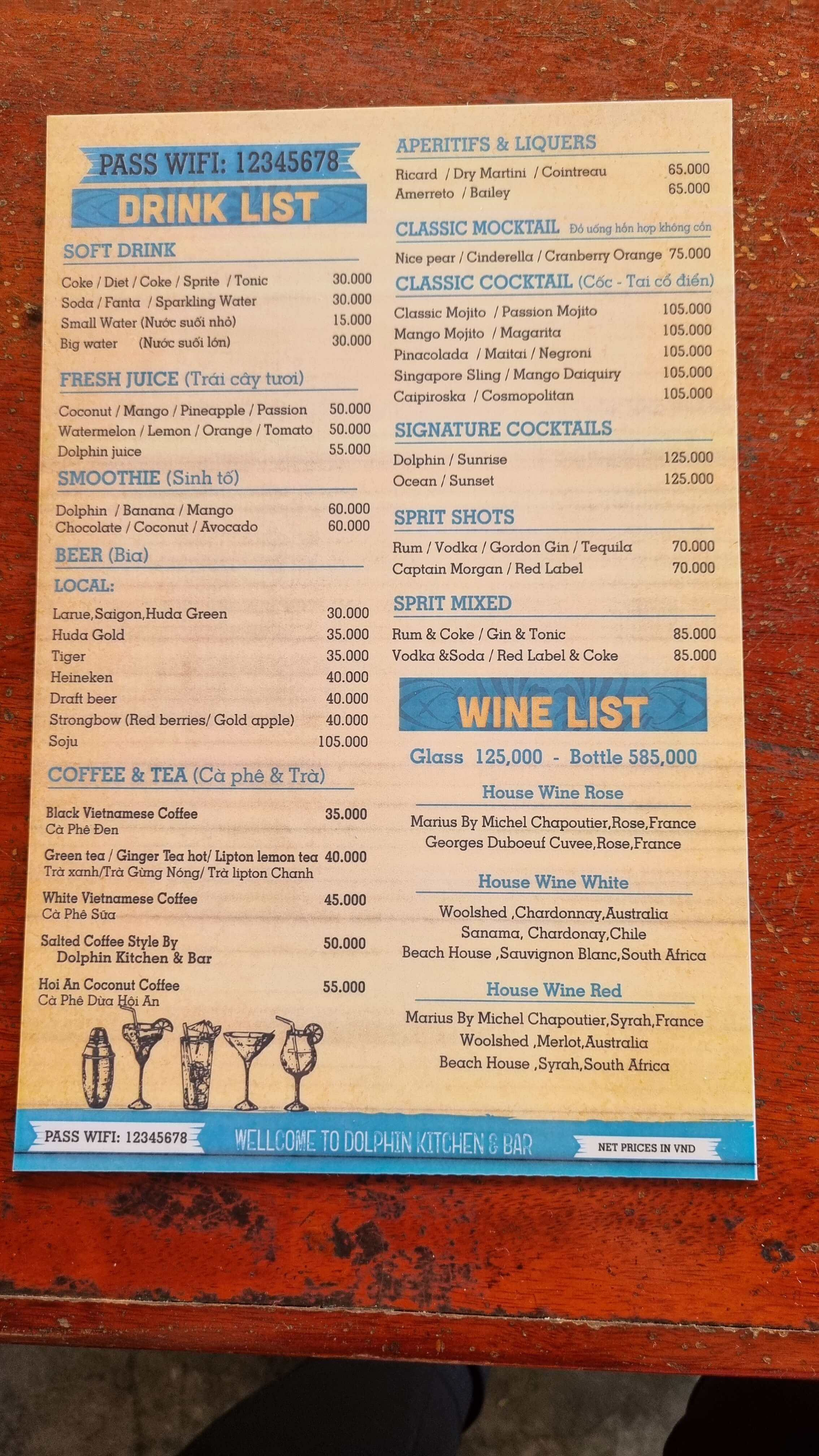 시원한 바닷바람과 탁 트인 오션뷰로 인해 제대로 힐링하고 온 카페입니다. 민트 향이 나서 호불호가 갈릴 수 있지만 저는 괜찮았었는데 돌핀 스무디도 한번 정도 경험해 보는 것을 추천드립니다. 식사에 대한 만족도도 높은 곳이라 호이안에 머문다면 한 번 정도 식사를 하러 오고 싶은 곳입니다.