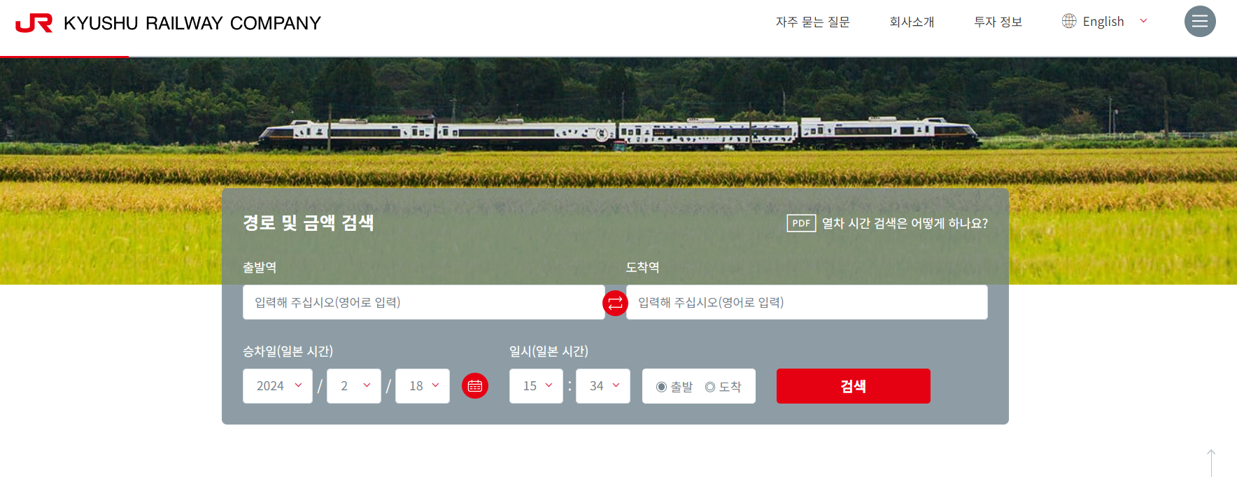 - JR큐슈의 공식 홈페이지( JR KYUSHU RAILWAY COMPANY )에 접속합니다.